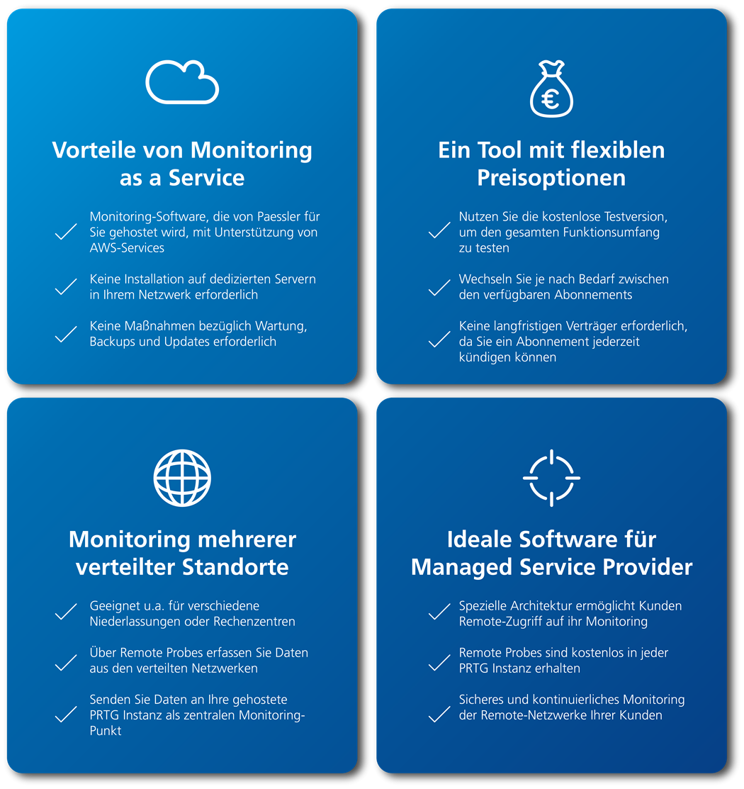 Folgende Kernaspekte deckt der PRTG Hosted Monitor zuversichtlich ab:
