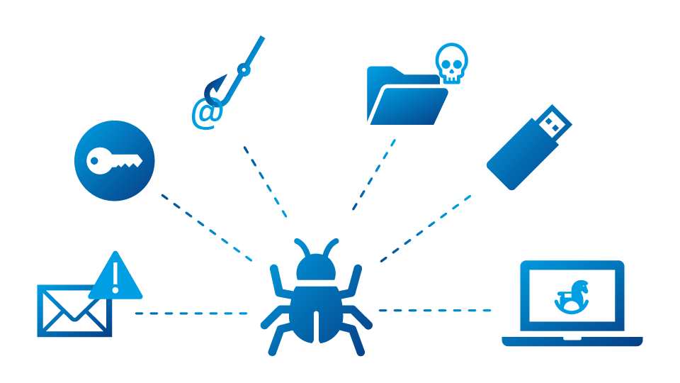 Einer der größten Gefahrenherde sind Hackerangriffe. Die Attacken finden typischerweise auf einer Vielzahl an Wegen statt, wobei ständig neue Methoden entwickelt werden, um Sicherheitsmaßnahmen zu umgehen. Folgende Arten von Angriffen verzeichnen Unternehmen hierbei besonders häufig: