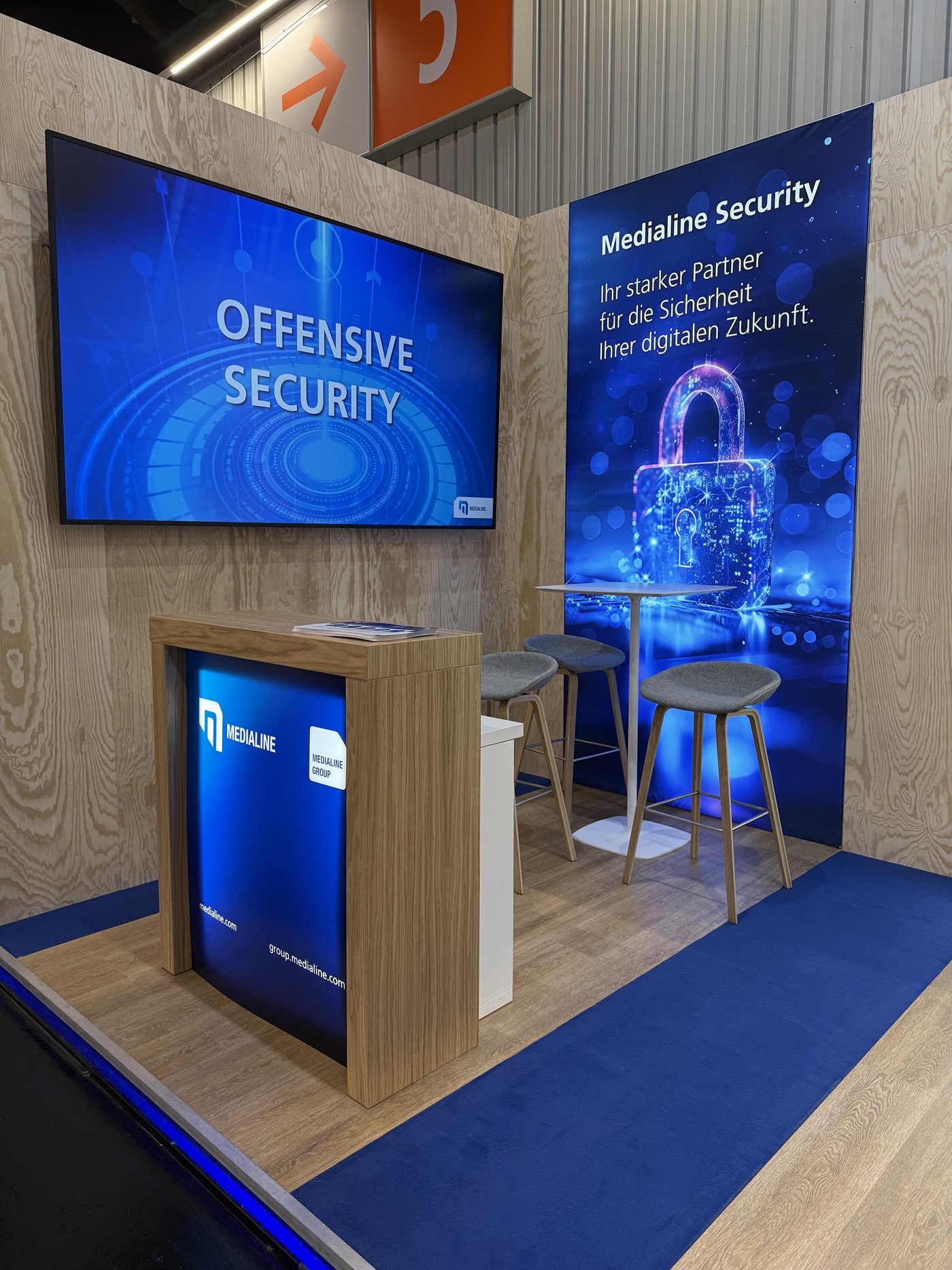 Am Stand der Medialine Security – gemeinsam mit Eye Security und Fortinet – lag der Schwerpunkt klar auf moderner Cyberabwehr: Dazu gehörten Themen wie Network Security, Web Application Security, SOC-Systeme zur Angriffserkennung bis hin zu Awareness & Consulting.