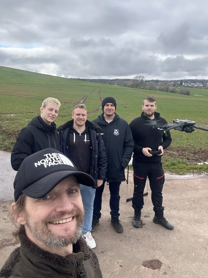 Auch die aktive Mithilfe wird hierbei gefördert. Um bei Rettungsarbeiten noch effektiver unterstützen zu können, absolvierten einige unserer Mitarbeitenden auf freiwilliger Basis ihren Drohnenführerschein. In Flugschulungen erlernten sie den korrekten Umgang mit einer Wärmebilddrohne, um diese gezielt zur Erkennung der Kitze einsetzen zu können.