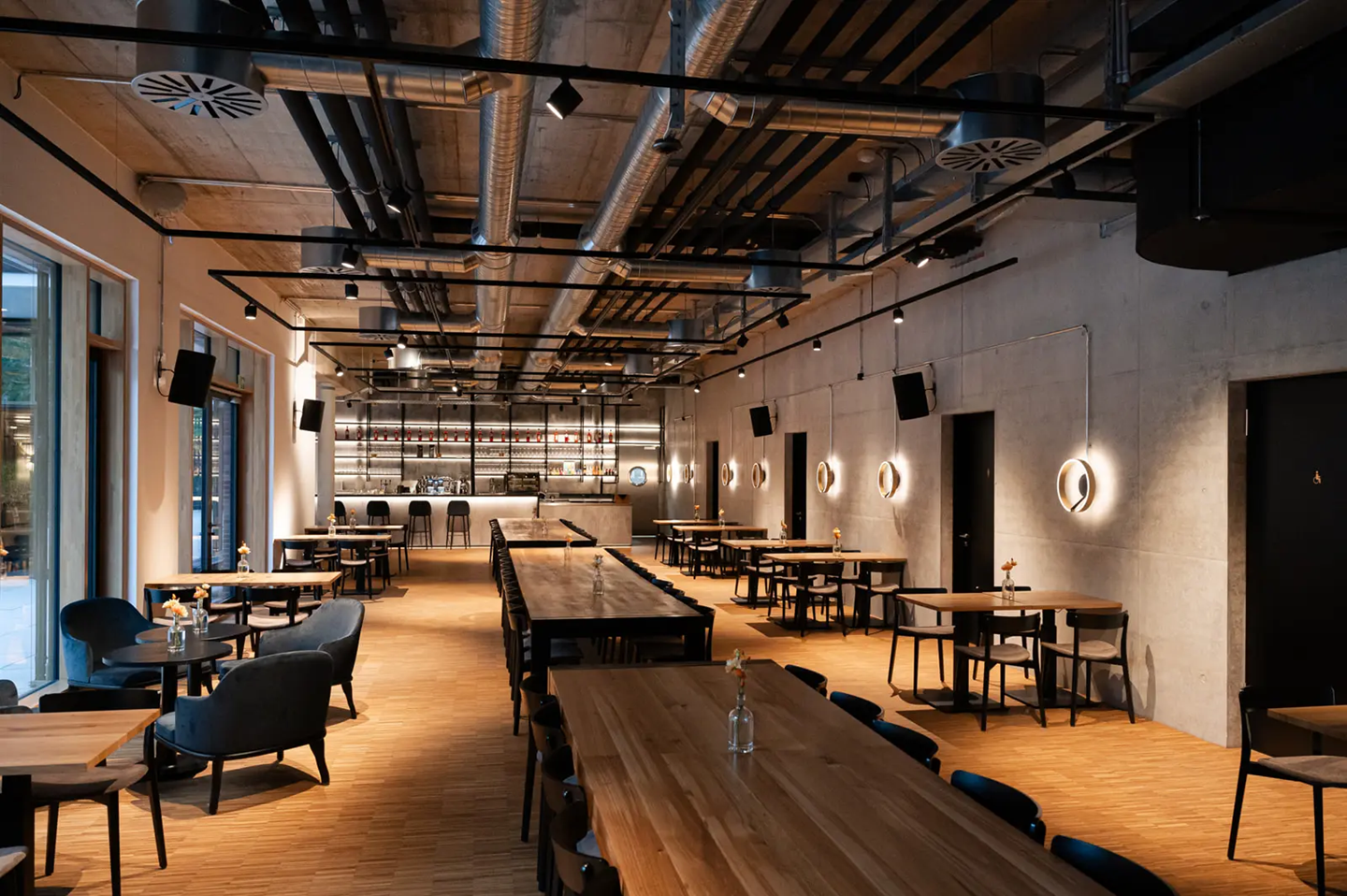Der Y.OUR Pavillon auf dem Campus der Hochschule Fresenius vereint stilvolles Design mit durchdachter Funktionalität. Die Eventlocation beeindruckt mit einem klaren, industriellen Look, maßgefertigten italienischen Möbeln und einem hochwertigen Lichtkonzept von Occhio. Ob Business-Meeting, Konferenz oder Networking-Event – die flexible Raumgestaltung und das elegante Ambiente bieten den perfekten Rahmen für professionelle Veranstaltungen in entspannter Atmosphäre.