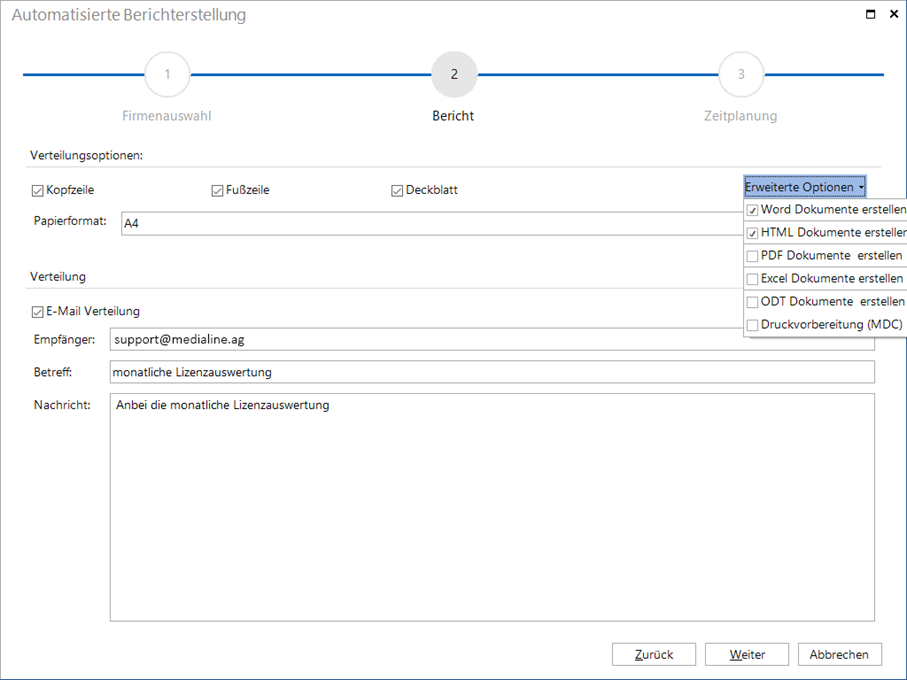 Wir verwandeln Ihre Daten in übersichtliche Dokumentationsberichte, die Sie nach Ihren individuellen Zeitvorgaben erstellen lassen können.
