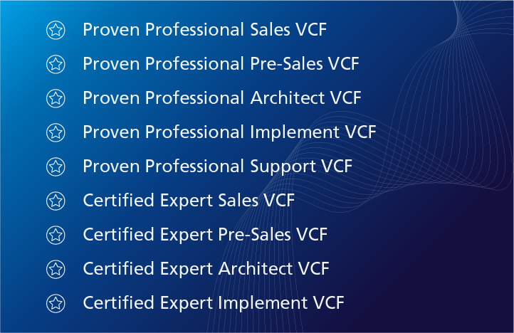 Eine Vielzahl an hochqualifizierten und zertifizierten Mitarbeitenden, ständige Weiterbildung und die regelmäßige Teilnahme an Fachveranstaltungen helfen uns dabei, diese Expertise zu halten und auszubauen. Wir bieten umfangreiche Kompetenz, Zertifizierungen und Erfahrung durch hochdekorierte Mitarbeiter im Produktbereich von VMware Cloud Foundation.